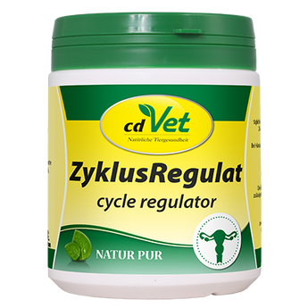cdVet ZyklusRegulat hat einen regulierenden Einfluss auf das hormonelle Geschehen und reguliert natürlich und schonend bei Problemen mit der Läufigkeit und immer wieder auftretenden Scheinträchtigkeiten. Durch seinen Einfluss auf das Prolaktin, dem Hormon, welches für die Milchbildung zuständig ist, kann es den Milchfluss reduzieren und Ruhe und Entspannung für die gestresste Hündin bringen. Die Kombination aus wertvollen Kräutern macht cdVet ZyklusRegulat zu einer natürlichen Unterstützung bei hormonellen Ungleichgewichten wie z.B. in der Läufigkeit und Scheinträchtigkeit.