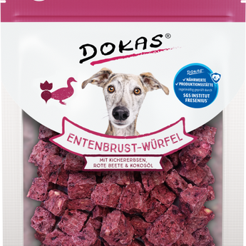 DOKAS Snack Hund Entenbrust-Würfel - Kichererbsen, Rote Beete, Kokosöl