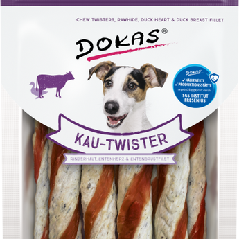 DOKAS Snack Hund Kau-Twister - Rinderhaut, Entenherz und Entenbrust