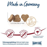 Der softe Snack Mini Neuseeland in süßer Herzform ist ideal zum Verwöhnen deines Lieblings oder als kleines Leckerchen für zwischendurch. Pures Lamm und sehr leicht verdaulicher Reis sind äußerst gut verträglich besonders magen- und darmfreundlich. Die glutenfreie Rezeptur eignet sich auch perfekt für sensible sowie anspruchsvolle Hunde kleiner Rassen. Die Snacks werden ohne den Zusatz von Zucker und Konservierungsstoffen hergestellt und haben einen praktischen Wiederverschluss für langanhaltende Frische. Gönn deiner Fellnase leckere Geschmackserlebnisse!