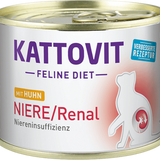 Zur Unterstützung der Nierenfunktion bei chronischer Niereninsuffizienz und zur Verringerung von Oxalsteinbildung. Kattovit Feline Diet - NIERE/Renal wurde speziell entwickelt, um die Katzen mit einem reduzierten Eiweißgehalt zu versorgen, durch die Verwendung von hochwertigem Protein in einer leicht verdaulichen Zusammensetzung. Hohe Eiweißgehalte können sich schädigend auf die Nieren auswirken. Entscheidend ist dabei der Proteingehalt bezogen auf die Energiemenge. Bei Kattovit NIERE/Renal wird, im Gegensatz zu herkömmlichem Futter, nur etwa die Hälfte der Energie durch Eiweiß erbracht. Die Anreicherung mit Kaliumcitrat wirkt harnalkalisierend und kann somit der Oxalat-Kristallbildung vorbeugen (Oxalatprophylaxe). Der Gehalt an Phosphor ist reduziert.