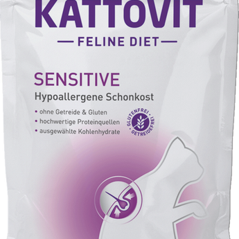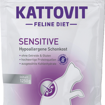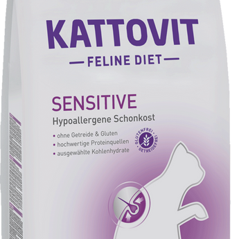 Zur Minderung von Ausgangserzeugnis- und Nährstoffintoleranzerscheinungen. Kattovit Feline Diet – SENSITIVE wurde für sensible Katzen entwickelt, die unter bestimmten Futtermittelallergien leiden und kann den Erhalt der Haut- und Fellgesundheit unterstützen. Insbesondere wurde auf die Beigabe von Rinder- und Schweineprotein sowie von Getreide verzichtet. Geeignete Kombination der wesentlichen ernährungsphysiologischen Merkmale, je nach Anwendbarkeit.