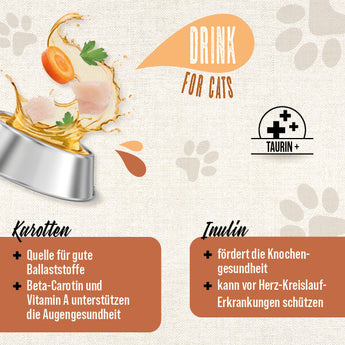 81,6% Fleischsaft, 15% Hühnerfleisch, 3% Karotte, 0,25% Inulin, 0,1% Mineralstoffe, 0,05% Petersilie