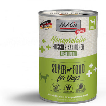 MACs DOG Mono Kaninchen besteht aus nur einer Fleischsorte als Proteinlieferant. MAC’s MONO eignet sich ideal bei empfindlichen Hunden und ist zur Ausschlussdiät geeignet. Die getreidefreie Vollnahrung wurde entwickelt, um das Wohlbefinden Ihres Lieblings zu steigern.