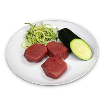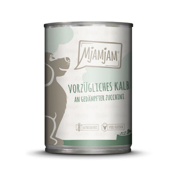 Diese Mahlzeit bietet deinem Liebling alles was er braucht. Das frische Kalbfleisch, verfeinert mit gedämpfter Zucchini, gibt ihm ein einzigartiges und exklusives Genusserlebnis, das ihn zugleich mit allen wichtigen Vitaminen und Mineralien versorgt. „Artgerecht, natur- und beutenah“ – dies steht bei uns für einen sehr hohen Fleischanteil. Auf Getreide, Zucker, Konservierungs- oder Geschmacksstoffe sowie synthetische Bindemittel wird vollends verzichtet.