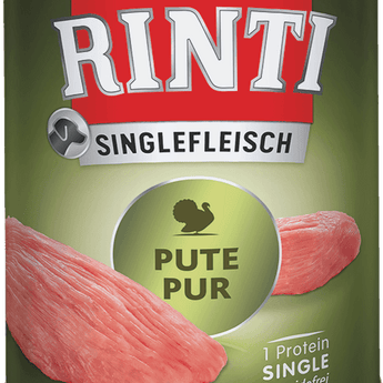 SINGLEFLEISCH EXCLUSIVE - einzigartige Komposition aus Fleisch und Innereien einer besonders exklusiven Tierart. RINTI SINGLEFLEISCH EXCLUSIVE bietet eine ausgewogene Ernährung für Hunde mit besonderen Ansprüchen, ohne zugesetzte Kohlenhydrate und getreidefrei, mit nur einer Proteinquelle. Die verwendeten exklusiven Tierarten sind ideal für Hunde, die auf häufiger verwendete Tierarten sensibel reagieren könnten. Für empfindliche / wählerische Hunde. Rinti Singlefleisch Exclusive ausschließlich mit 100% PUTE PUR im Fleischanteil.