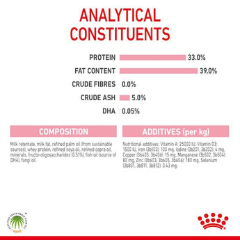 Royal Canin stellt sicher, dass alle ihre Produkte einer gründlichen Qualitätskontrolle unterzogen werden, um eine erstklassige Futterqualität zu gewährleisten und die individuellen Ernährungsbedürfnisse sowie den Lebensstil Ihrer Katze optimal zu berücksichtigen. Hierdurch können Sie Ihrem Katzenwelpen mit Royal Canin Babycat Milk eine hochwertige und ausgewogene Ernährung bieten.