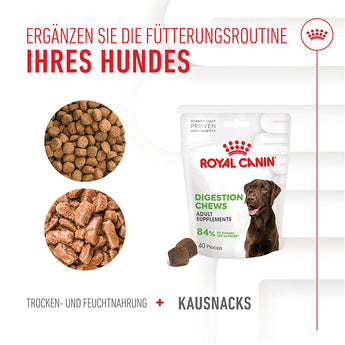 ROYAL CANIN® DIGESTION CHEWS ADULT SUPPLEMENTS für ausgewachsene Hunde - zur Unterstützung einer gesunden Verdauung und einer ausgewogenen Darmflora.