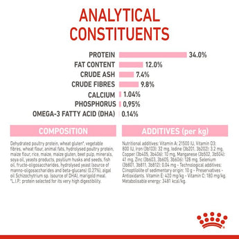Darüber hinaus enthält ROYAL CANIN Kitten Sterilised eine Kombination aus Präbiotika (MOS) & hochverdaulichen Proteinen zur Unterstützung einer ausgewogenen Darmflora und einer gesunden Verdauung. Denken Sie bitte immer daran, Ihrer Katze eine Schale mit frischem Wasser bereit zu stellen.