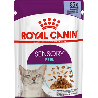 Für eine vielfältige Fütterungserfahrung der Katze ist ROYAL CANIN SENSORY™ FEEL Feuchtnahrung als Häppchen in Soße oder in Gelee erhältlich. Ergänzt wird die neue Feuchtnahrung durch zwei weitere Sorten: SENSORY™ SMELL und SENSORY™ TASTE in jeweils zwei Texturen und durch einen Multipack mit den Sorten SENSORY™ TASTE, SMELL und FEEL in Soße.