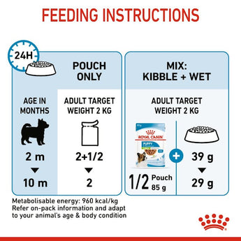 Royal Canin X-Small Puppy in Soße ist speziell für Welpen sehr kleiner Hunderassen entwickelt. Mit seiner angepassten Größe und weichen Textur ist es ideal für Milchzähne und sorgt für eine einfache Futteraufnahme. Dein kleiner Vierbeiner wird den köstlichen Geschmack lieben, selbst wenn er anspruchsvoll ist.