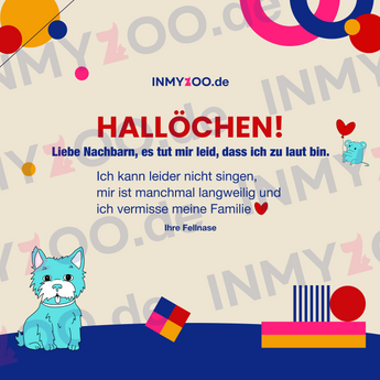 Liebe Tierfreunde, wir freuen uns sehr, dass Sie sich für unser Online- Shop interessieren. Haustiere sind sehr beliebt, aber manchmal stören sie durch Lärm. Die Tierhaltung ist oft Ursache von Konflikten oder Streitigkeiten zwischen Nachbar*in. Wir haben für Sie ein Poster gemacht!