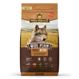In den Rocky Mountains Nordamerikas, der arktischen Tundra, den Bergen und Wäldern Europas bis hin zu den Wüsten und Steppen Zentralasiens jagen Wölfe ihre Beute. Diese versorgt sie mit Fleisch und nährstoffreichen Innereien, aber auch mit Gemüse, Früchten, Beeren, Wurzeln und Kräutern über den Mageninhalt der Beute. Getreide gehört hier nicht dazu. So erhält der Wolf seine benötigten Vitamine, Mineralstoffe, Spurenelemente, Enzyme und sekundären Pflanzenstoffe. Da der Wolf der Urahn aller Hunde ist, orientiert sich unser Wolfsblut Hundetrockenfutter an diesen natürlichen Fressgewohnheiten des Wolfs. Es enthält viel Fleisch oder Fisch kombiniert mit Superfoods, die wertvolle Inhaltsstoffe enthalten – und das wie in der Natur, ganz ohne Getreide. Unsere Auswahl an außergewöhnlichen Fleischsorten und nährstoffreichen Superfoods baut dabei auf den Lebensräumen des Wolfs und deren bunter Nahrungsvielfalt auf. Wolfsblut bietet jedem Hund eine artgerechte und ursprüngliche Ernährung und mit seiner Sortenvielfalt ist für jeden etwas dabei, das er verträgt. Die Rezeptur von WIDE PLAIN ACTIVE Trockenfutter verbindet die Nahrung des Wolfs mit den neuesten wissenschaftlichen Erkenntnissen über richtige Hundeernährung.