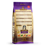 Alleinfuttermittel für heranwachsende Hunde großer Rassen Truthahn 49 % (davon frisches Truthahnfleisch 26 %, getrocknetes Turthahnfleisch 20 %, Truthahnfett 3 %), Süßkartoffeln 22 %, Kürbis 6,5 %, Kichererbsen, Mineralstoffe, Fenchel, Topinambur, Tomaten, Leinsamen, Pastinaken, Kaktusfeige, Amaranth, Schachtelhalm, Granatapfel 1,2 %, Glukosamin, Methylsulfonylmethan (MSM), Grünlippmuschel, Chondroitinsulfat, Thymian, Majoran, Oregano, Petersilie 0,1 %, Salbei 0,1 %, Mannan-Oligosaccharide (prebiotisch MOS), Fructo-Oligosaccharide (prebiotisch FOS), Citrus-Extrakt, Hefe, Brombeeren 0,1 %, Himbeeren 0,1 %, Heidelbeeren 0,1 %, Schwarze Johannisbeeren, Holunderbeeren, Aroniabeeren, Brennnessel, Weißdorn, Löwenzahn, Cetylmyristoleat, Yucca Schidigera Extrakt, Ginseng.
