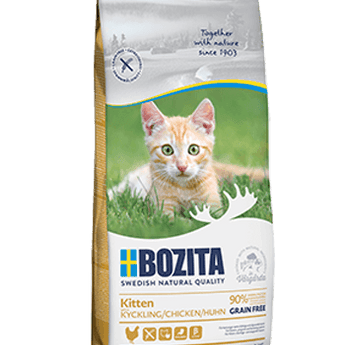 Bozita Kitten Getreidefrei Huhn ist ein Alleinfuttermittel für Kitten und junge Katzen mit speziell entwickelten kleinen Kroketten. Das Futter deckt den hohen Energie- und Proteinbedarf der jungen Katze und bietet optimale Bedingungen für Wachstum und Muskelaufbau. Der verhältnismäßig hohe Energiegehalt eignet sich auch hervorragend für die Zucht von Katzen, in der Trächtigkeit und während der Säugezeit. Huhn und Lachs sind besonders schmackhaft und leicht verdaulich, sodass das Kitten die Nährstoffe leichter aufnehmen kann.