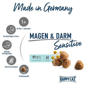 Happy Cat Sensitive Magen & Darm wurde speziell für die Bedürfnisse verdauungssensibler Katzen entwickelt und enthält:
