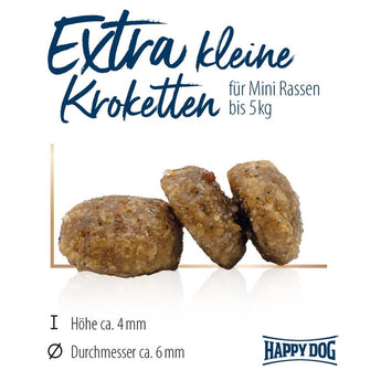Die extra kleinen Kroketten sind optimal auf das Gebiss besonders kleiner Hunde bis 5 kg abgestimmt.