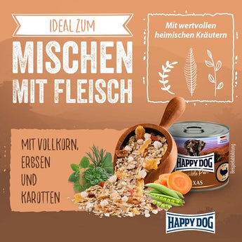 Der vegetarische Happy Dog NaturCroq Flocken-Mixer eignet sehr gut für selbst zubereitete Rationen, wie Selbstgekochtes, BARF oder in Kombination mit unseren Sensible Pure Dosen. Fleisch ist zwar wertvoll, aber allein nicht vollwertig und ausreichend! Zu einer artgerechten und ausgewogenen Hundeernährung gehört auch eine vielfältige und hochverdauliche Pflanzenkost mit ihren Wirk- und Ballaststoffen.