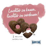 Die einzigartige Herzform unseres Trockenfutters ist für Hundewelpen leichter zu zerkauen. Durch das Loch in der Mitte zerbrechen die Kroketten schneller. Die größere Oberfläche macht sie im Magen-Darm-Trakt wiederum besonders gut verdaulich.