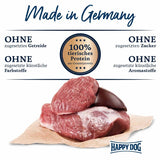 Mit Happy Dog Sensible Pure Neuseeland Hunde Nassfutter verfütterst du Natur pur. Unsere premium Fleischnahrung wird zu 100 % aus wertvollem Fleisch sowie Innereien, wie Herz, Lunge und Leber hergestellt und beinhaltet lebenswichtige Vitamine und Mineralstoffe. Dabei kommen Fleisch und Innereien ausschließlich vom Lamm*. Natürlich wir das Nassfutter ohne Soja oder sonstige pflanzliche Zusätze hergestellt.