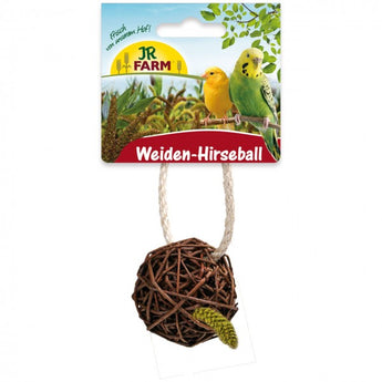 Der naturbelassene Weiden-Hirseball ist eine willkommene Abwechslung für alle Ziervögel und kann an jeder beliebigen Stelle im Vogelheim aufgehängt werden. Während die kleinen Federfreunde mit Freude die leckere Hirse aus dem Ball picken, wetzen sie dabei automatisch ihren Schnabel an der Weide ab. Die Weide selbst ist 100 % Natur und darf daher nicht nur bepickt, sondern auch verzehrt werden. Hirse enthält natürliche Vitamine, Mineralien und Spurenelemente. Das enthaltene Eisen kann die Blutbildung anregen, Silizium stärkend auf Haut, Federkleid und Krallen wirken.