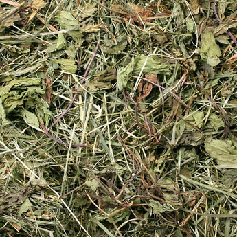 Schonend getrocknete Gräser und Kräuter mit sehr hohem Blattanteil. Angereichert mit rohfaserreicher Pfefferminze. Das Premium-Heu für die Gourmets unter den Nagern.