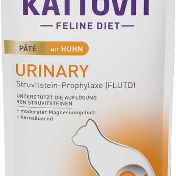Zur Verringerung von Struvitsteinrezidiven und der Erkrankung der unteren Harnwege bei Katzen. Kattovit Feline Diet - URINARY wurde nach neuesten wissenschaftlichen Erkenntnissen entwickelt. Zur Vorbeugung von Harnsteinen (Feline lower urinary tract disease - FLUTD) wurde die Zusammensetzung des Futters so entwickelt, dass der pH-Wert des Katzenurins mit 6,5 deutlich im niedrigen Bereich liegt. Kattovit URINARY enthält harnansäuernde Stoffe (DL-Methionin, Ammoniumchlorid und Calciumsulfat) und hat einen niedrigen Magnesiumgehalt. Zur Vorbeugung sind eine hohe Verdaulichkeit und eine hohe Energiedichte wichtig.