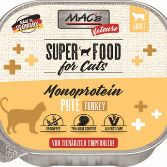 MACs Mono Katze Pute, Alleinfuttermittel für ausgewachsene Katzen, Monoprotein zur Ausschlussdiät und Unverträglichkeiten.