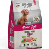 Soft, Mono und perfekt für empfindliche Hunde: Das neue MAC’s Soft Mono Pferd liefert deiner Fellnase viel frisches Fleisch, kombiniert mit frischem Gemüse und gesunden Kräutern. Das halbfeuchte Futter ist ideal für Hunde, die sich zwischen Trocken- und Nassfutter nicht so recht entscheiden möchten. Die softe Beschaffenheit, der hohe Feuchtigkeitsgehalt und das vitaminschonende Kochverfahren sorgen für eine besonders hohe Akzeptanz. Durch den hohen Anteil an frischem Pferdefleisch als einzige tierische Proteinquelle eignet sich MAC’s Soft Mono Pferd ideal zur Ausschlussdiät sowie für allergieanfällige und ernährungssensible Hunde. Die Sorte ist außerdem getreidefrei und enthält Süßkartoffeln, welche die Verdauung zusätzlich fördern.