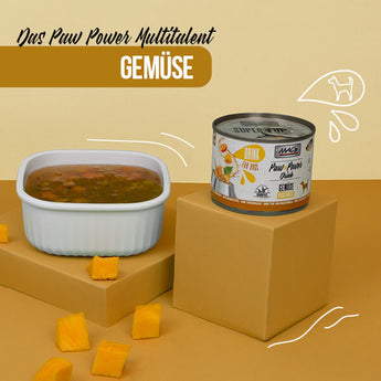 Unser Paw Power Drink Gemüse besteht aus viel Flüssigkeit und leckerem Gemüse. Als praktisches Ergänzungsfuttermittel hat er eine besonders hohe Akzeptanz und dank des schonenden Kochverfahrens bleiben wichtige Vitamine und Mineralstoffe erhalten.
