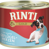 Für kleine Feinschmecker – mit besonders vielen echten Fleischstückchen. Natürlich ohne Formfleisch, ohne Soja (pflanzliche Eiweißextrakte) und ohne Farb- oder Aromastoffe. Rinti Gold, weil Ihr Hund einfach Gold wert ist. Fleisch und Innereien: 70%.