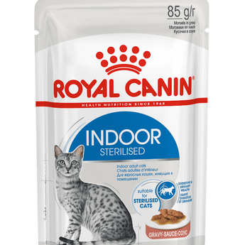 Um den individuellen Vorlieben verschiedener Katze gerecht zu werden, ist ROYAL CANIN INDOOR Sterilised Nassfutter als Stückchen in Soße oder in Gelee erhältlich. Ergänzt wird das Nassfutter für Wohnungskatzen durch ein Sortiment an Trockennahrungen. ROYAL CANIN INDOOR Trockenfutter ist in verschiedenen Variationen erhältlich, je nach Appetit, Felllänge und Alter Ihrer Katze: INDOOR 27, INDOOR APPETITE CONTROL, INDOOR LONG HAIR oder INDOOR 7+.