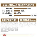 ANALYTISCHE BESTANDTEILE: Protein: 30,0% - Rohfaser: 5,0% - Fettgehalt: 15,0% - Rohasche: 5,4% - Phosphor: 0,6% - EPA/DHA: 0,6% - Tryptophan: 0,4% - Beta-Carotin: 15,2 mg/kg - Lycopen: 7 mg/kg - L-Carnitin: 212 mg/kg