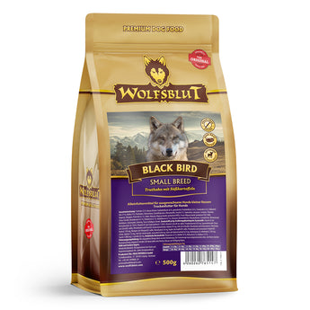 In den Rocky Mountains Nordamerikas, der arktischen Tundra, den Bergen und Wäldern Europas bis hin zu den Wüsten und Steppen Zentralasiens jagen Wölfe ihre Beute. Diese versorgt sie mit Fleisch und nährstoffreichen Innereien, aber auch mit Gemüse, Früchten, Beeren, Wurzeln und Kräutern über den Mageninhalt der Beute. Getreide gehört hier nicht dazu. So erhält der Wolf seine benötigten Vitamine, Mineralstoffe, Spurenelemente, Enzyme und sekundären Pflanzenstoffe. Da der Wolf der Urahn aller Hunde ist, orientiert sich unser Wolfsblut Hundetrockenfutter an diesen natürlichen Fressgewohnheiten des Wolfs. Es enthält viel Fleisch oder Fisch kombiniert mit Superfoods, die wertvolle Inhaltsstoffe enthalten – und das wie in der Natur, ganz ohne Getreide. Unsere Auswahl an außergewöhnlichen Fleischsorten und nährstoffreichen Superfoods baut dabei auf den Lebensräumen des Wolfs und deren bunter Nahrungsvielfalt auf. Wolfsblut bietet jedem Hund eine artgerechte und ursprüngliche Ernährung und mit seiner Sortenvielfalt ist für jeden etwas dabei, das er verträgt. Die Rezeptur von BLACK BIRD.SMALL BREED.Trockenfutter verbindet die Nahrung des Wolfs mit den neuesten wissenschaftlichen Erkenntnissen über richtige Hundeernährung.