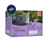 Bozita Senior 8+ Extra Huhn und Rind ist ein Alleinfuttermittel für Katzen ab einem Alter von 8 Jahren. Das Futter ist auf den etwas geringeren Energiebedarf älterer Katzen zugeschnitten und daher auch ideal für sterilisierte Katzen oder Katzen, die leicht zunehmen. Das Futter enthält Zellulosefasern, die das Risiko von Haarballen reduzieren, sowie Glucosamin und Chondroitinsulfat – natürliche Bestandteile gesunder Gelenke.