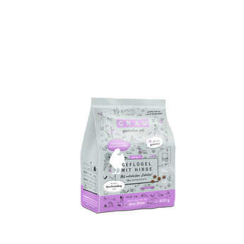Leicht verdauliches Geflügel und glutenfreie Hirse vollgepackt mit Eisen, Kalium und weiteren Mineralstoffen versorgen deine Katze mit allem, was sie benötigt. Leinsaat liefert zudem hochwertige Ballaststoffe und enthält einen hohen Anteil an Omega-Fettsäuren, die Haut und Fell deiner Samtpfote unterstützen. Obendrauf sorgt das enthaltene Methionin dafür, den pH-Wert des Urins zu senken, um der Bildung von Harngries (Struvit) vorzubeugen. Gut zu wissen: Dank des moderaten Proteingehalts ist das Mahl auch für alle Stubentiger und Senioren geeignet.