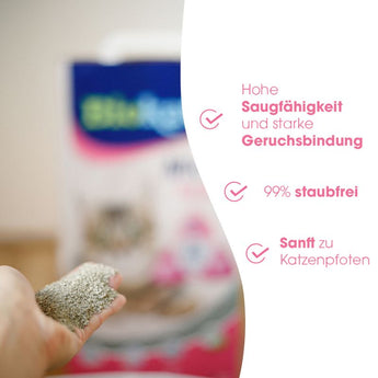 Die extrafeine Körnung ist sanft zu empfindlichen Katzenpfoten, während die effektive Geruchsbindung unangenehme Düfte dauerhaft neutralisiert.