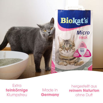 Biokat’s Micro Fresh ist eine natürliche Katzenstreu aus feinem, deutschem Natur-Ton – kombiniert mit einem dezenten, erfrischenden Sommerduft für ein angenehmes Raumklima.
