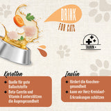 Die Variante Huhn ist mit Karotten verfeinert, welche eine großartige Quelle für Ballaststoffe, Vitamin A und Beta-Carotin sind. Das enthaltene Inulin fördert die Knochengesundheit und kann vor Herz-Kreislauf-Erkrankungen schützen.
