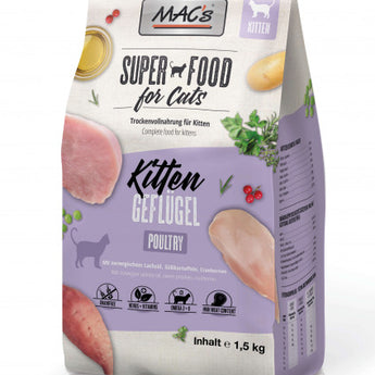 MACs Kitten Geflügel bietet Ihrer Katze alles, was sie für ein gesundes Wachstum benötigt. Die getreidefreie Vollnahrung wurde entwickelt, um das Wohlbefinden Ihres Lieblings zu steigern. MACs Kitten bietet ein ausgewogenes Aminosäureprofil. Norwegisches Lachsöl ist reich an Omega-Fettsäuren und sorgt für eine gesunde Haut und ein glänzendes Fell. Cranberries sind natürliche Säurebildner und können bakteriellen Blaseninfektionen vorbeugen. Durch schonende Zubereitung und die Zugabe von Vitaminen und Mineralstoffen wird eine naturnahe Ernährung Ihrer Katze erreicht.