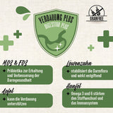 Die Variante Verdauung Plus fördert die Verdauung, kann den Appetit anregen und die Darmflora stabilisieren. Diese Funktion wird durch die funktionalen Inhaltsstoffe Löwenzahn, Apfel oder Hanföl erzielt. Zusätzlich sorgen die Präbiotika MOS und FOS für die Verbesserung und Erhaltung der optimalen Darmgesundheit.