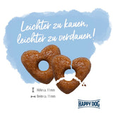 Die Kroketten für das Welpenfutter sind herzförmig und haben ein Loch in der Mitte. So kann dein Welpe beim Fressen die Stücke schneller zerbeißen und kaut besser. Die größere Oberfläche führt dazu, dass das Futter von den Magensäften optimal aufgeschlossen wird. Dadurch wird eine gute Verdauung unterstützt.