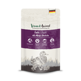 Venandi Nassfutter Ente versorgt Ihre Katze mit allen wichtigen Nährstoffen und ist durch seine natürlichen und delikaten Zutaten äußerst schmackhaft. Der hohe Fleischanteil des Menüs stammt aus einer Proteinquelle, was selbst bei Katzen mit empfindlicher Verdauung zu einer sehr hohen Verträglichkeit führt. Neben frischem Muskelfleisch sind nahrhafte Innereien enthalten, die auf natürliche Weise den Bedarf an Vitaminen und Mineralstoffen decken.