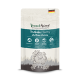 Venandi Nassfutter Truthahn versorgt Ihre Katze mit allen wichtigen Nährstoffen und ist durch seine natürlichen und delikaten Zutaten äußerst schmackhaft. Der hohe Fleischanteil des Menüs stammt aus einer Proteinquelle, was selbst bei Katzen mit empfindlicher Verdauung zu einer sehr hohen Verträglichkeit führt. Neben frischem Muskelfleisch sind nahrhafte Innereien enthalten, die auf natürliche Weise den Bedarf an Vitaminen und Mineralstoffen decken.
