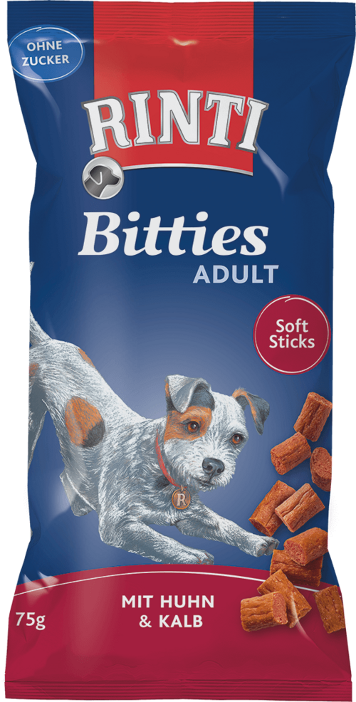 Leckere, softe Sticks für erwachsene Hunde Mit viel frischem Fleisch zubereitet. Die extra weichen Stückchen - wie alle Rinti Snacks ohne Zucker - lassen sich besonders gut zerbeißen.