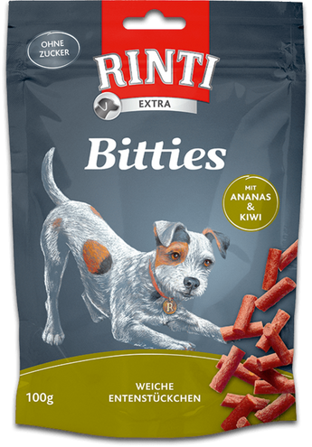 Bitties werden nur aus frischem Entenbrustfilet und Entenleber sowie frischer Ananas und Kiwi zubereitet, ohne Fleischmehle, ohne Soja (pflanzliche Eiweißextrakte) und dazu schonend luftgetrocknet mit anschließender Sterilisation. Sie schmecken nicht nur besonders lecker, sondern sind auch so bekömmlich und gut verdaulich.