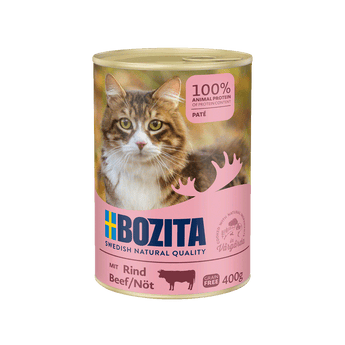 Bozita Paté mit Rind ist ein getreidefreies Alleinfuttermittel für erwachsene Katzen und junge Kätzchen, welches auf Rohstoffen höchster Qualität basiert.