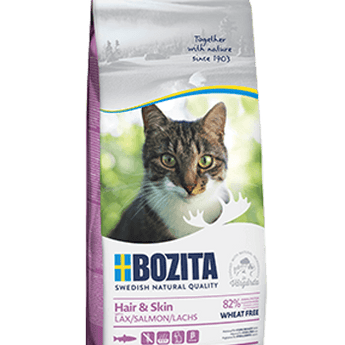 Bozita Hair & Skin Weizenfrei Lachs ist ein Alleinfuttermittel für die erwachsene Katze. Es ist besonders geeignet für Katzen mit langem Fell und Katzen, die zusätzliche Nährstoffe für Haut und Fell benötigen. Frisch zubereiteter Lachs ist besonders schmackhaft und leicht verdaulich, sodass die Katze die Nährstoffe leichter aufnehmen kann. Lachs enthält gesunde Fettsäuren, die zusammen mit Biotin und Zink gute Voraussetzungen für gesunde Haut und gesundes Fell bieten. Für Katzen mit langem Fell haben wir unlösliche Faserstoffe hinzugefügt, die das Risiko der Haarballenentstehung reduzieren. Das Produkt enthält natürliche Hefe, Beta-Glucane, mit gesundheitsfördernden Eigenschaften, ein optimales Gleichgewicht an Mineralstoffen (Ca, P, Mg) und einen hohen Anteil an Vitaminen und Taurin.