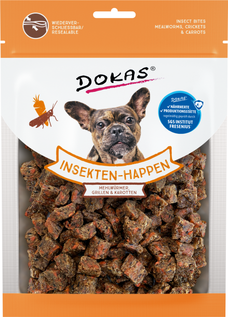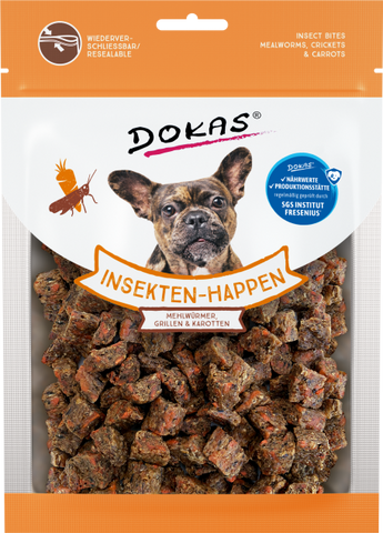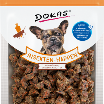 DOKAS Snack Hund Insekten-Happen - Mehlwürmer, Grillen & Karotte