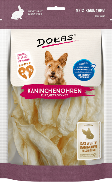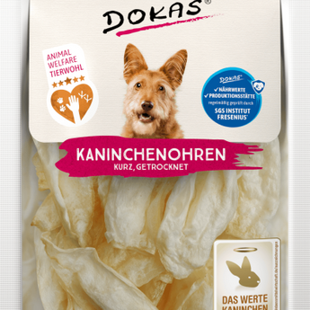 DOKAS Snack Hund Kaninchenohren ohne Fell getrocknet